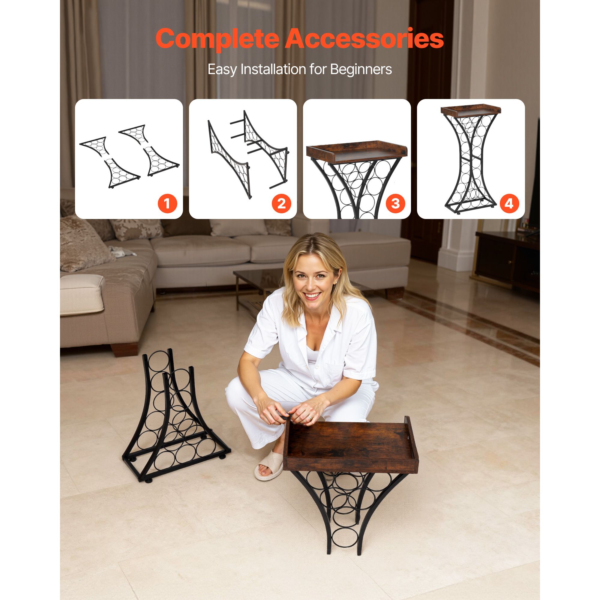 This freestanding iron-wood wine rack free standing floor easily stores up to 15 bottles and can be placed anywhere, compatible with various wine bottle types. Its beautiful shape suits various home decoration styles, and the thick iron frame ensures stable and non-wobbly placement.